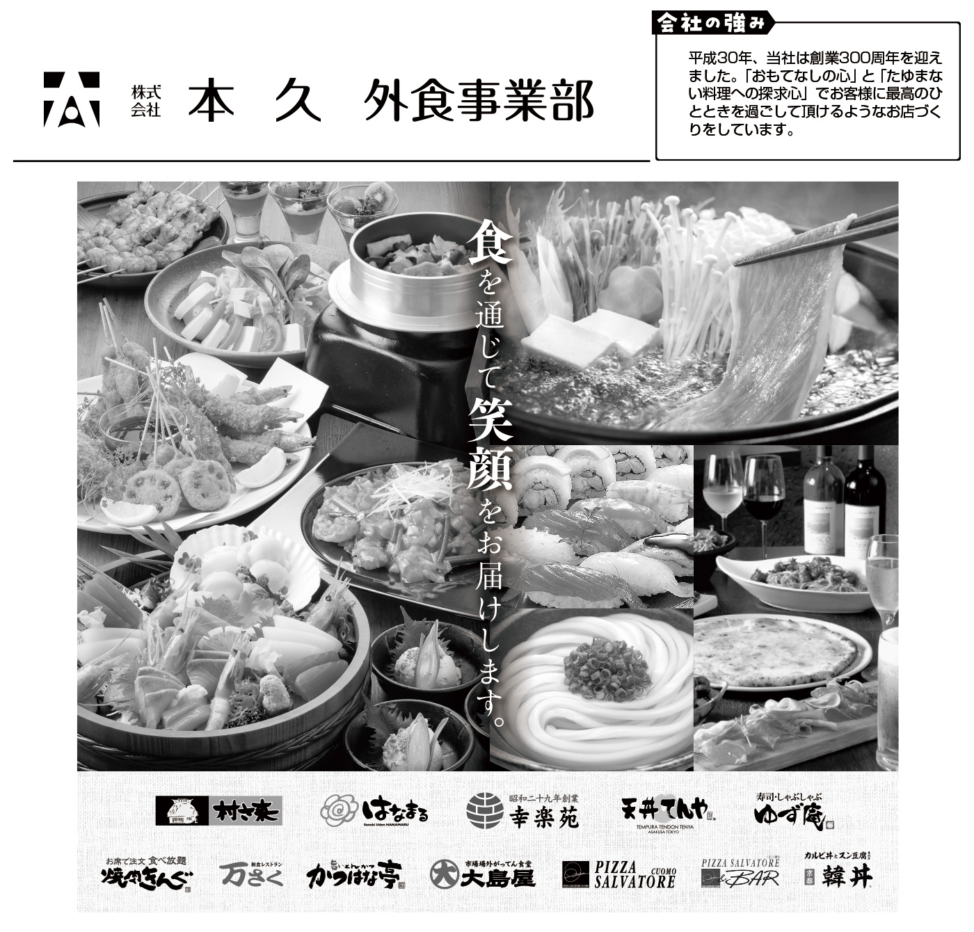 | 事業内容 | 外食事業の運営 「村さ来」「はなまるうどん」「幸楽苑」「焼肉きんぐ」「ゆず庵」「天丼てんや」「かつはな亭」「がってん食堂大島屋」「万さく」「サルヴァトーレクオモ」「韓丼」業態の運営 |