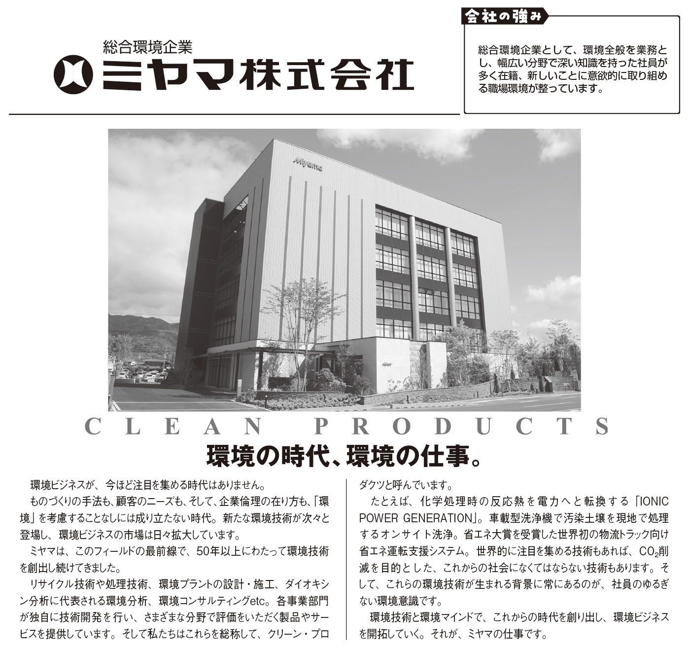 | 事業内容 | 各種環境プラントの設計施工、有用資源のリサイクル、産業廃棄物の収集運搬・中間処理、環境計量証明、作業環境測定、土壌・地下水の調査回復、化成品・環境機器類の製造販売、工場設備の洗浄・解体 |