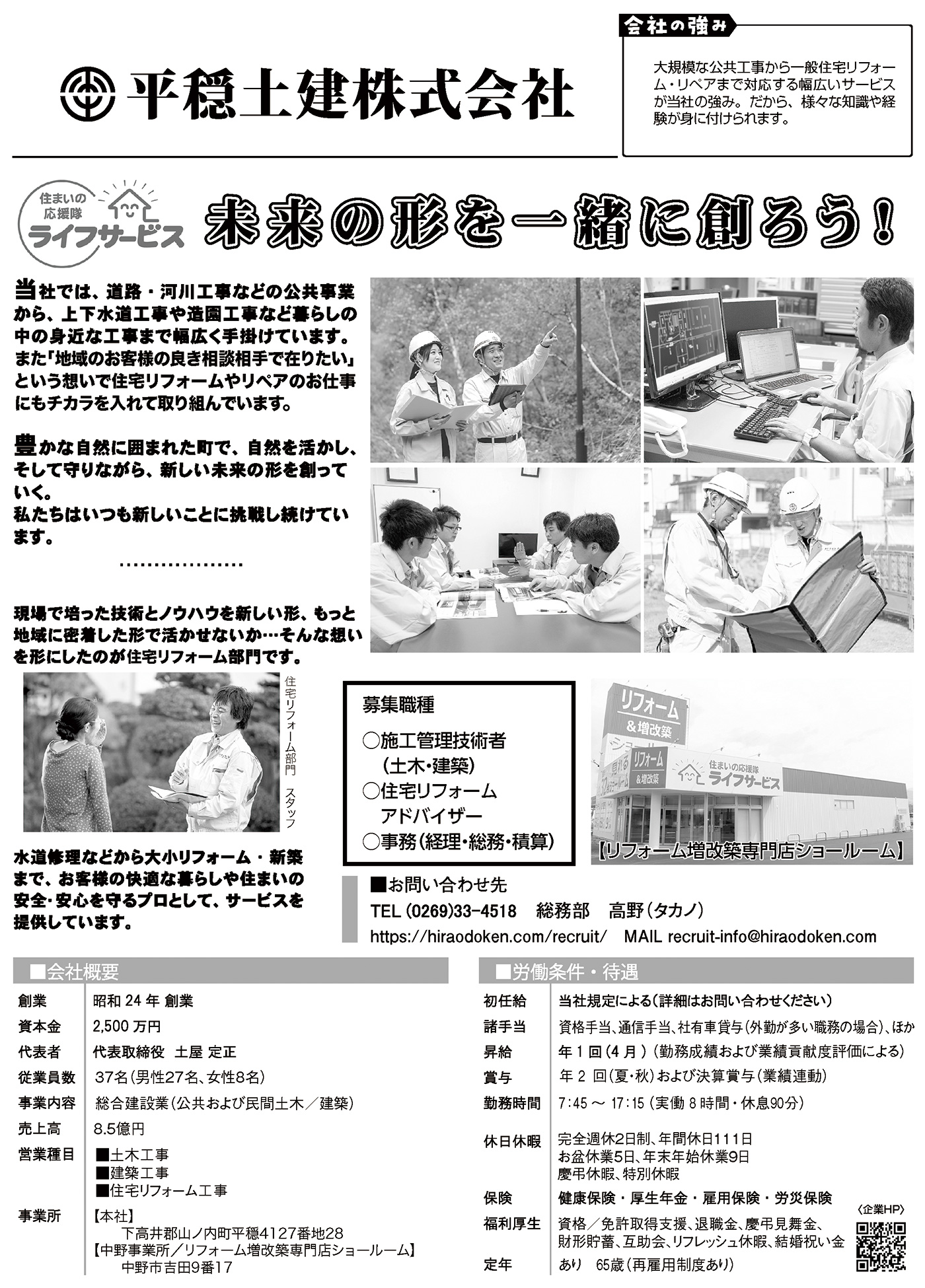 基本コースは「座学による会社・仕事説明⇒施工中/竣工現場の見学と実務体験⇒先輩社員との座談会⇒社長からのメッセージトーク」を予定します。詳細お問い合わせ・お申し込みは当社HPのエントリーフォームから、もしくはメール・お電話でご応募ください。
