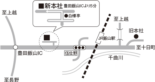 | 所在地 | 本社【工事部】 〒389-2256 長野県飯山市大字蓮3957番地 TEL 0269-62-1000 FAX 0296-63-3553 長野支店【調査部】 〒381-0023 長野県長野市大字風間748-1 TEL 026-214-8335 FAX 026-214-8336 |