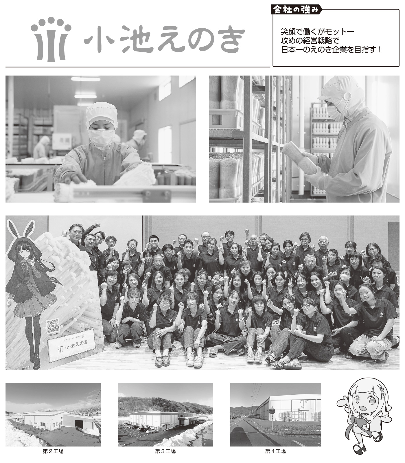 | 事業所 | 第1工場(長野県中野市七瀬45-1) 第2工場(長野県中野市片塩183) 第3工場(長野県中野市片塩216) 第4工場(長野県中野市小田中763) |