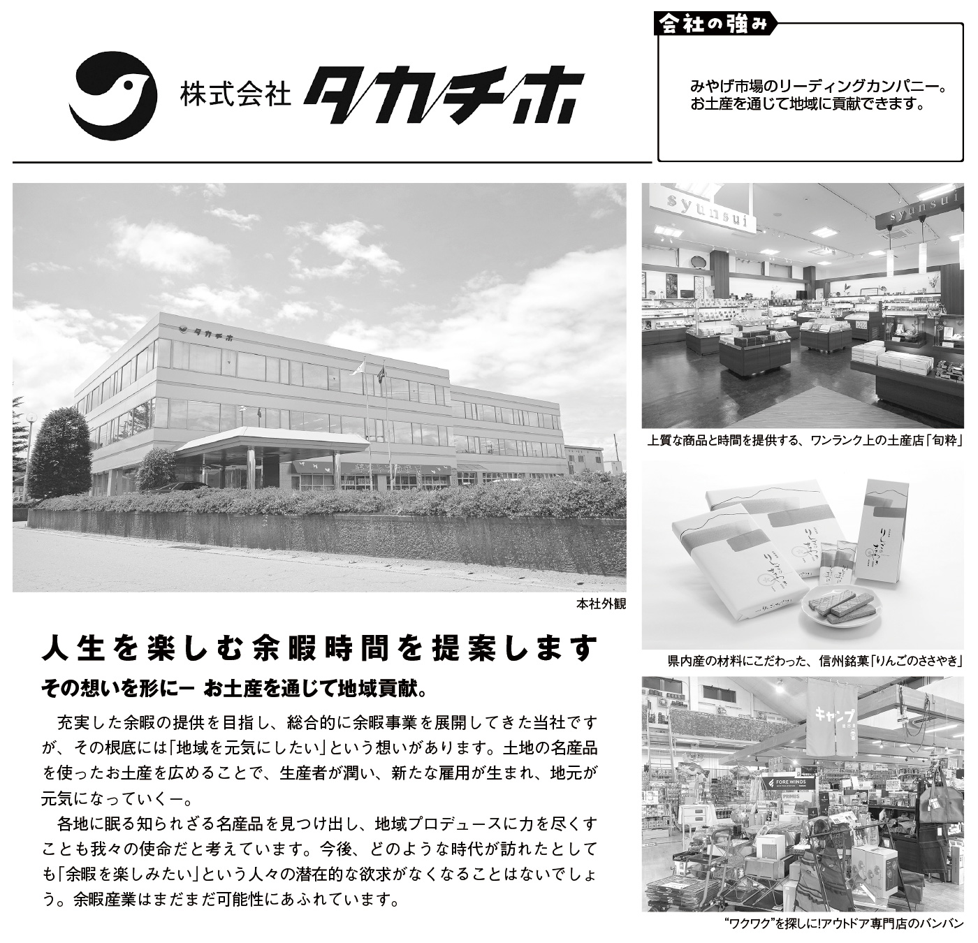 事業内容観光みやげ品の卸売、小売、製造、企画、アウトドア用品の小売店舗運営等
