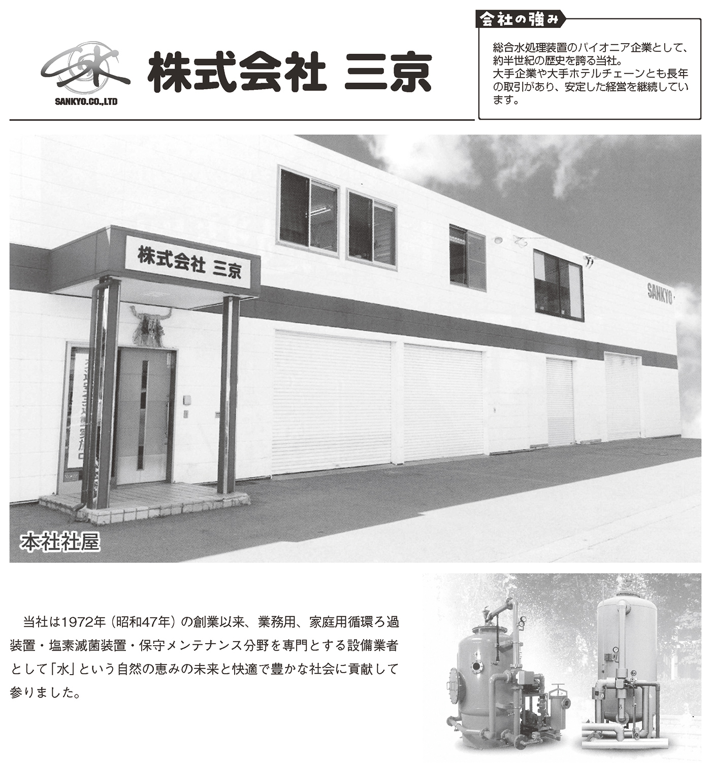 | 事業内容 | 総合水処理装置 販売施工保守、水処理薬品販売 |